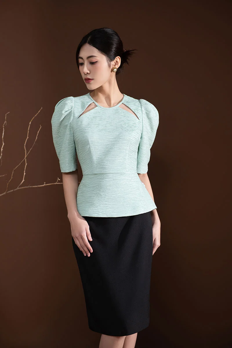 Gắn liền với hình ảnh các Quý cô sành điệu, áo kiểu nữ mang đến cho nàng vẻ đẹp nữ tính mà đầy thanh lịch. Chi tiết tay phồng cổ điển, vạt áo peplum khéo léo che đi khuyết điểm phần hông, tạo hiệu ứng dáng người “đồng hồ cát” cân đối cùng đường cutout gợi cảm một cách kín đáo, áo peplum khoét cổ sẽ là item có khả năng làm “xiêu lòng” cả những cô nàng khó tính nhất.